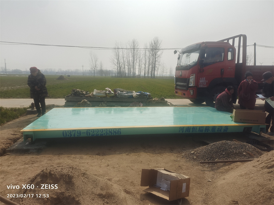 采背景購:商丘市睢縣郭莊農(nóng)業(yè)種植合作社,為了即將迎來的蔬菜成熟旺季,聯(lián)系訂購了河南恒瑞地磅廠2.5*5米定額20噸的地磅,地磅由一節(jié)2.5*5米組成,配備了柯力8t懸臂梁和XK3118K9儀表,現(xiàn)地磅已安裝完畢投入使用。